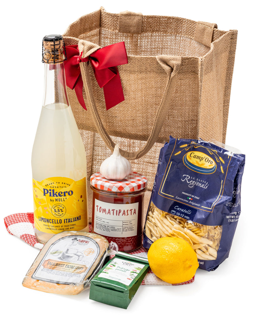 See kinkepakk viib maitserännule otse päikeselisse Itaaliasse, taluhõng ja Vahemere võlu käsikäes. Siit leiab väärika Nopri Gouda Eksklusiivi, parima pastakomplekti ürdiseguga, koduse tomatikastme ja särtsaka Limoncello mulli. Kõike täiendavad sidrun, küüslauk ja pehme käterätt – kingitus, mis kutsub lauda ja toob naeratuse näole.