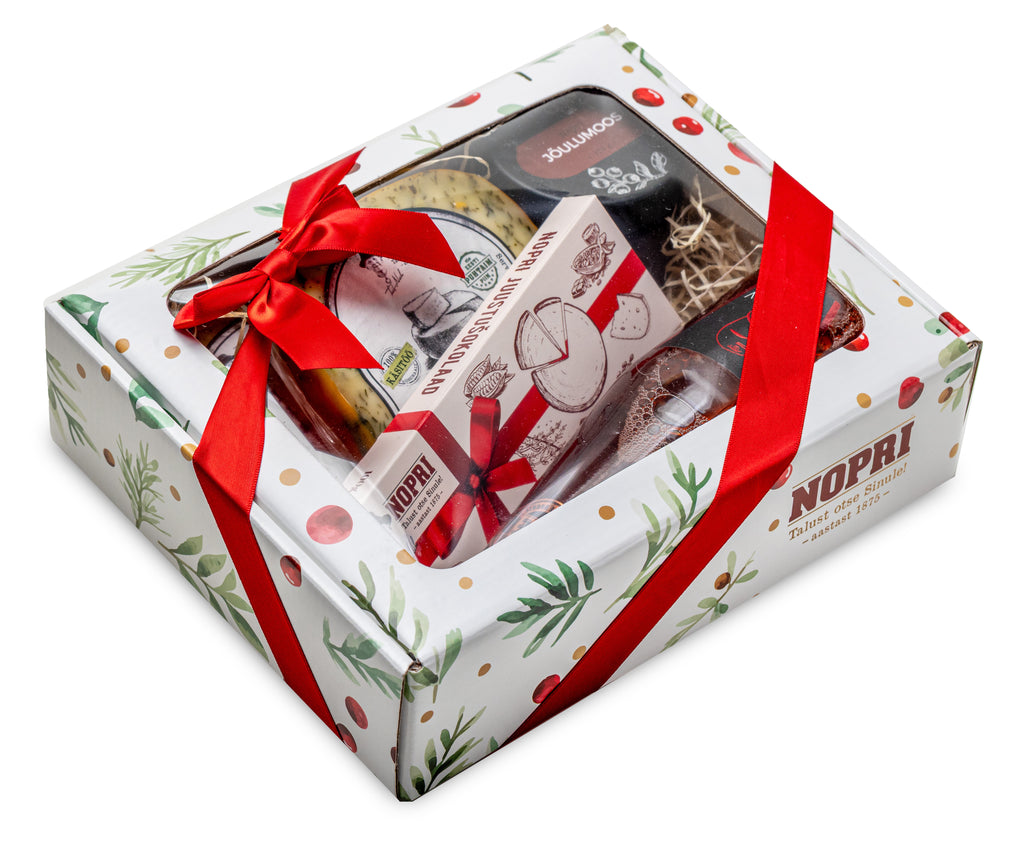 See kinkepakk on kui soe pai – hell ja kodune, aga täis põnevaid üllatusi. Sealt leiab Nopri armastatud Gouda juustu karulaugu ja köömnetega, millega sobivad suurepäraselt kokku särtsakas jõulumoos ja ainulaadne Nopri juustušokolaad. Maitsekoosluse teeb täiuslikuks pidulik Pööripäeva siider, mis on kui loodud eriliste hetkede nautimiseks. See on kingitus, mis toob rõõmu ja pidulikkust nii perele kui ka külalistele.