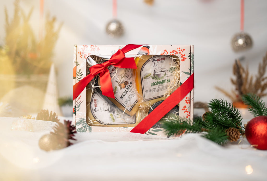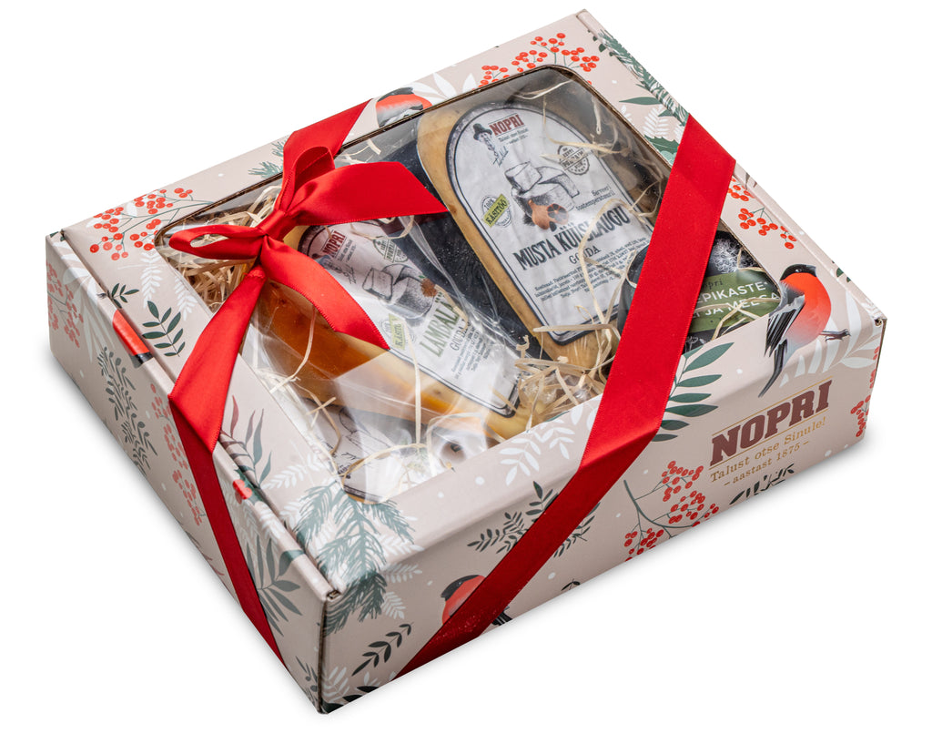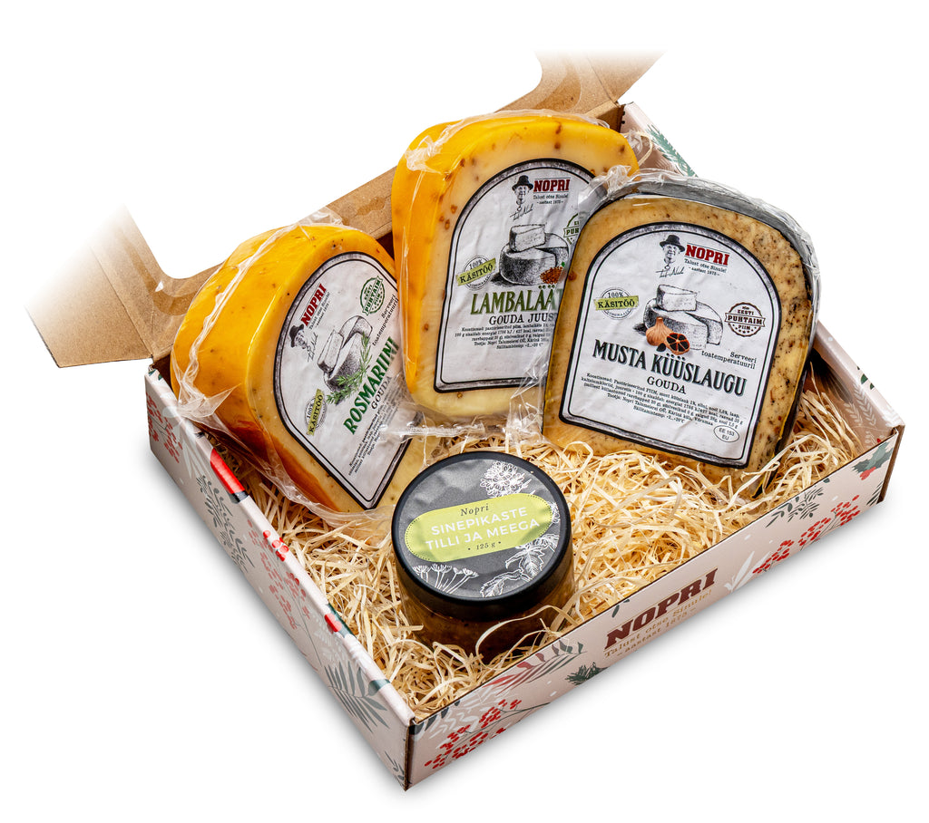 See kinkepakk on kui väike tükk talu südamesoojust. Siit leiab erilise maitsega Nopri Gouda musta küüslauguga, aromaatse rosmariiniga ja tugevama iseloomuga lambaläätsega juustu, millele annab koduse hõngu juurde mesine sinepikaste tilliga. Kingitus, mis ühendab pere ja toob lauale rõõmu.