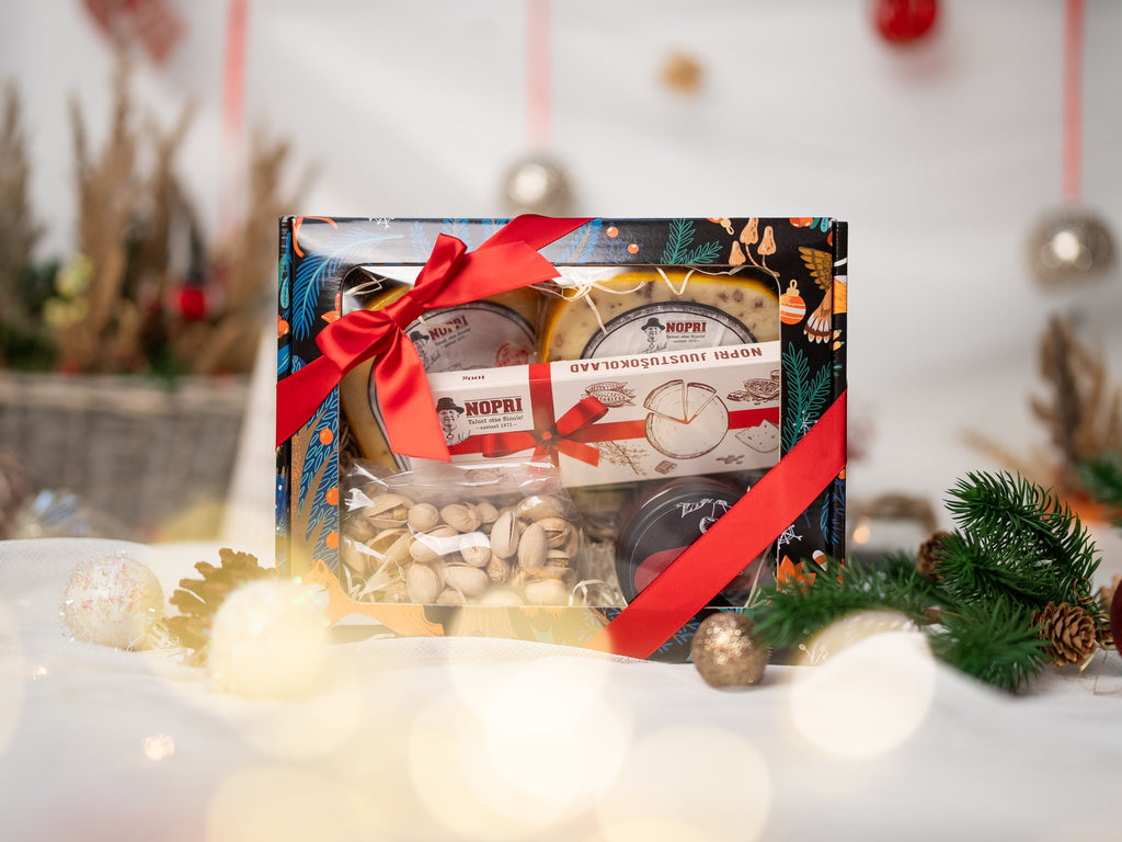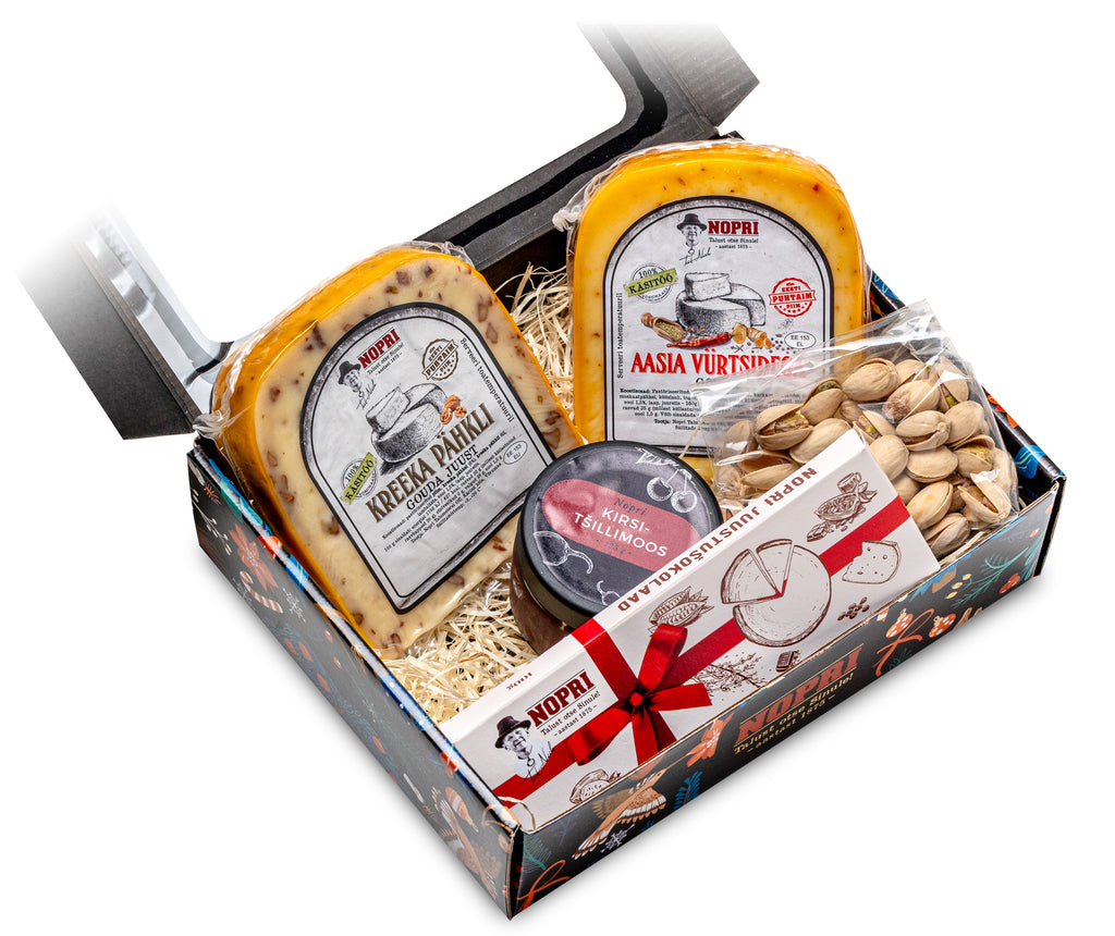 See kinkepakk on pisut mänguline ja üllatusi täis – just nagu peretütar ise. Siit leiab hõrgu Nopri Gouda Kreeka pähkliga ja eksootilisema Aasia vürtsidega juustu, mida täiendavad särtsakas kirsi-tšillimoos, krõbedad pistaatsiapähklid ja magus üllataja – Nopri juustušokolaad. Kingitus, mis paneb silmad särama ja toob lauale piduliku meeleolu.