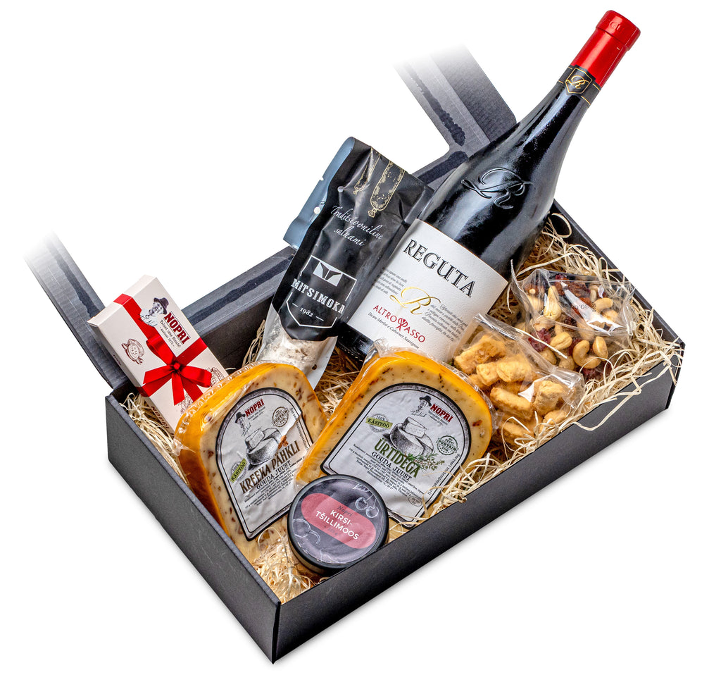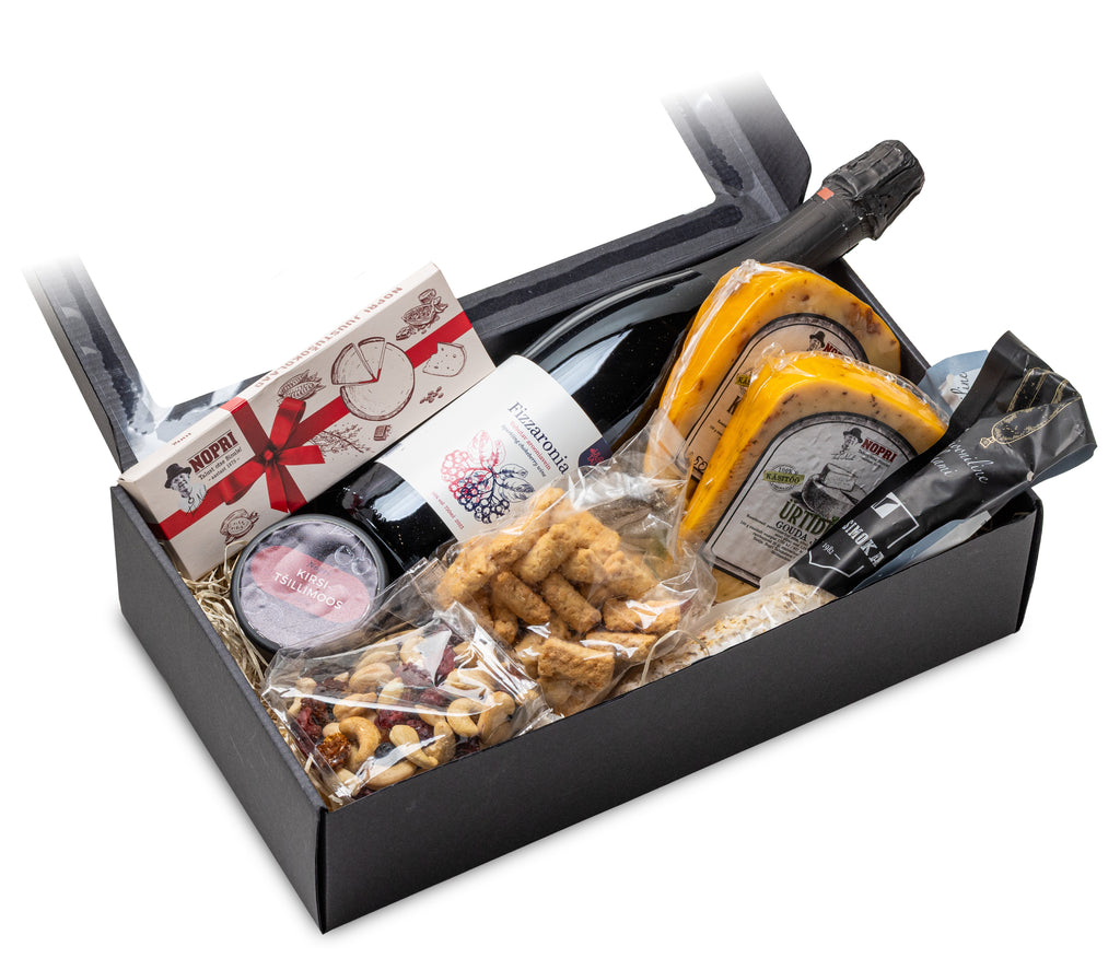 See kinkepakk on loodud neile, kes hindavad head veini ja rikkalikku maitsete koosmängu. Siit leiab hõrgu Nopri Gouda Kreeka pähkliga ja aromaatse ürdi-Gouda, millele pakuvad väärikat seltsi maitseküllane rüübe, magus juustušokolaad, särtsakas kirsi-tšillimoos ning krõbe energiasegu. Kõike täiendavad soolased juustuküpsised ja maitsekas salaami – täiuslik kooslus pidulikuks nautlemiseks.